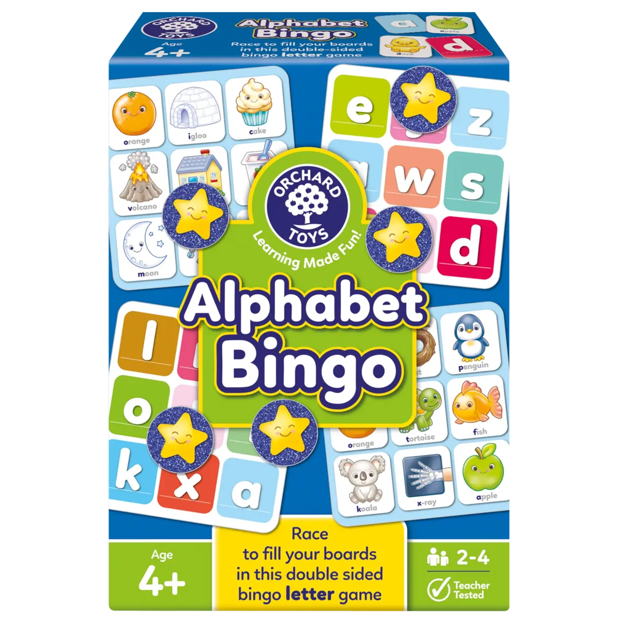 This fun and colourful bingo game helps children build early letter recognition skills while keeping gameplay exciting and varied. With four ways to play, Alphabet Bingo grows with your child as their confidence develops. Start with simple picture matching, then progress to recognising letters, and finally mix pictures and letters for an added challenge